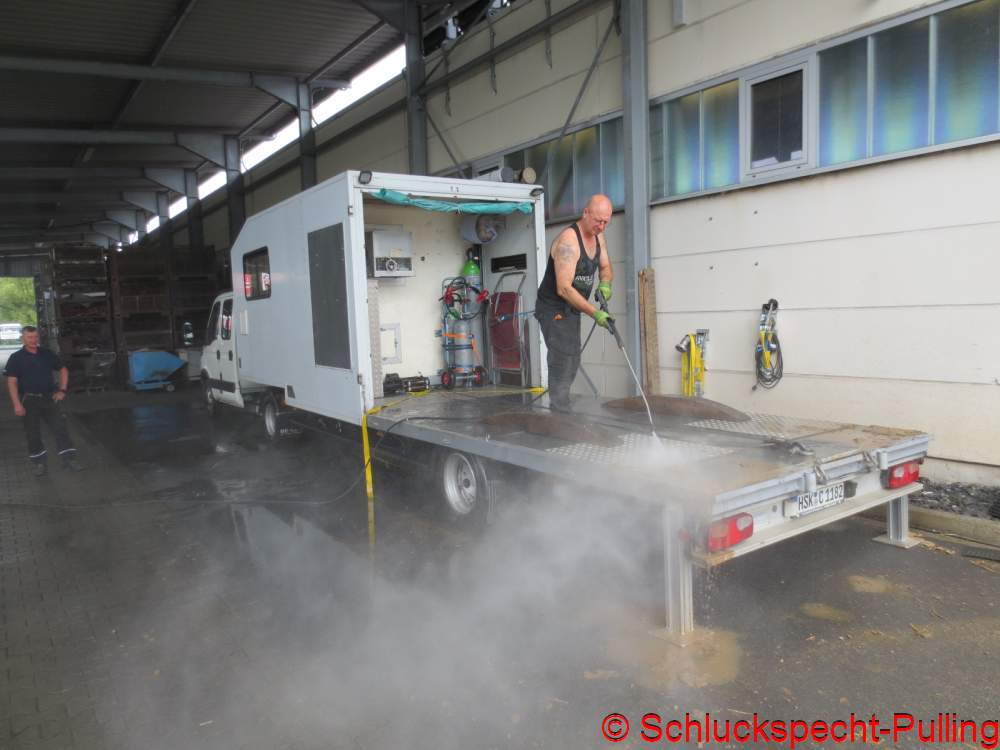 Before the fun begins, there’s the monotonous, tedious work. Over time, quite a few axles have accumulated that need to be taken apart. The yard looks like something out of the Ludolfs‘ house… only messier 😉