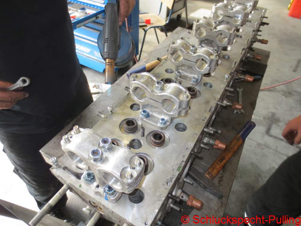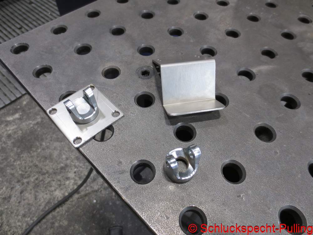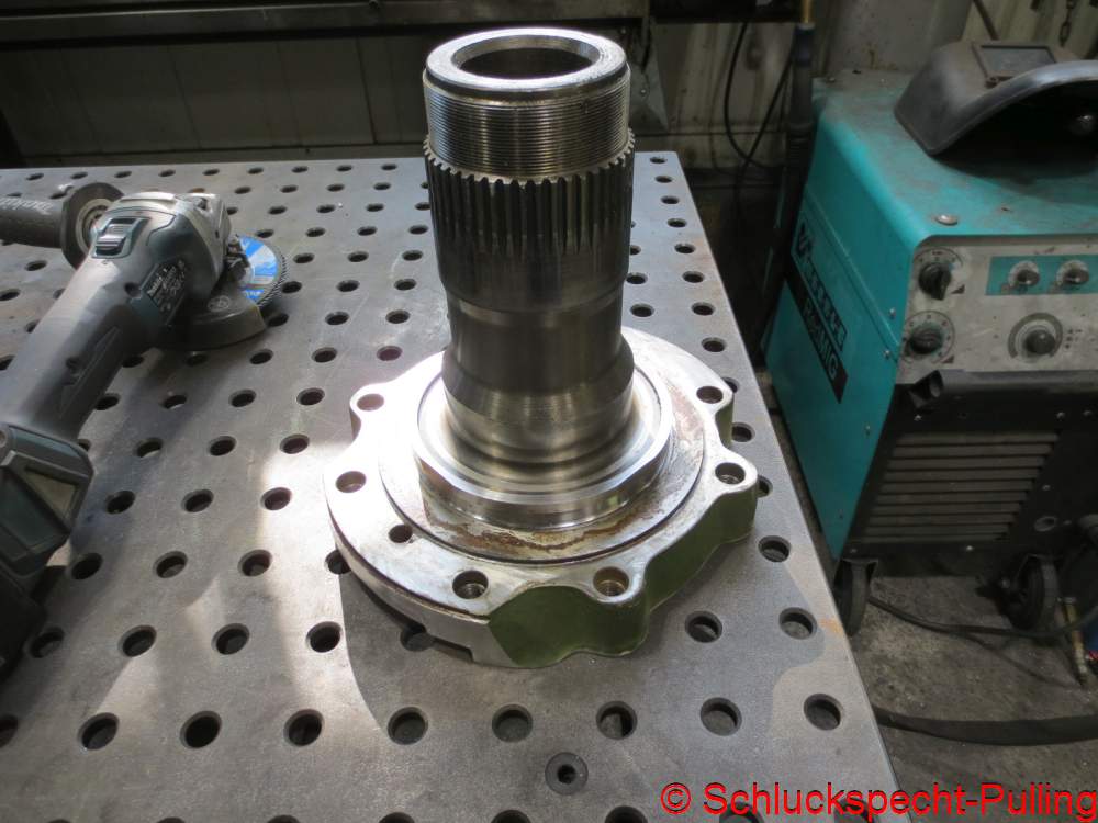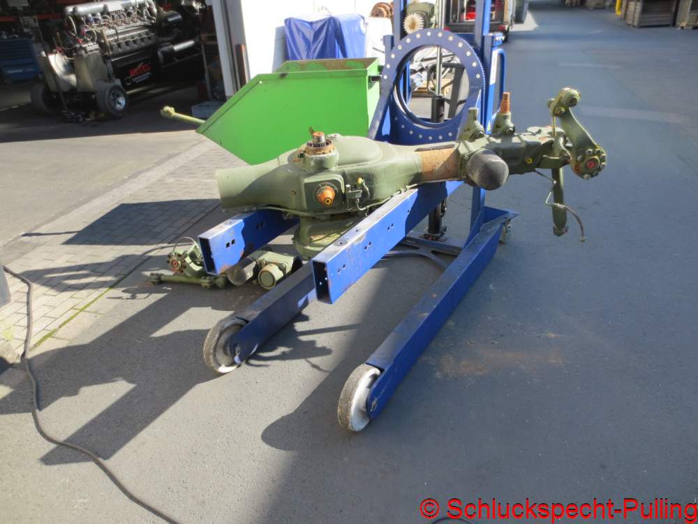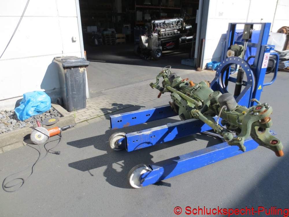 Beim Strahlen, Lackieren und Zusammenbauen des Treckers im Frühjahr erwies sich die Einheit aus Zugpendelaufnahme, Steigbegrenzern und Achse als „etwas“ unhandlich. Das soll sich dann mit der neuen Achse auch ändern.