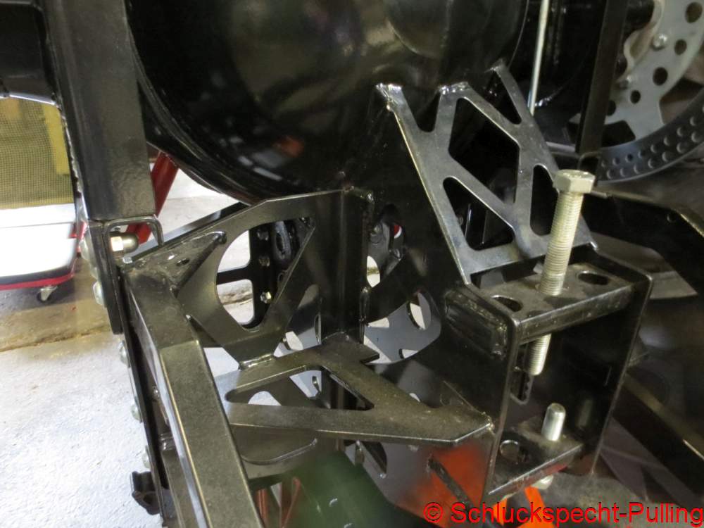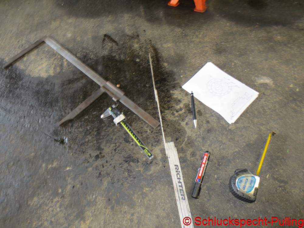 During the sandblasting, painting, and assembly of the tractor in the spring, the unit consisting of the drawbar mount, wheely bars, and axle proved to be „somewhat“ unwieldy. This should change with the new axle.