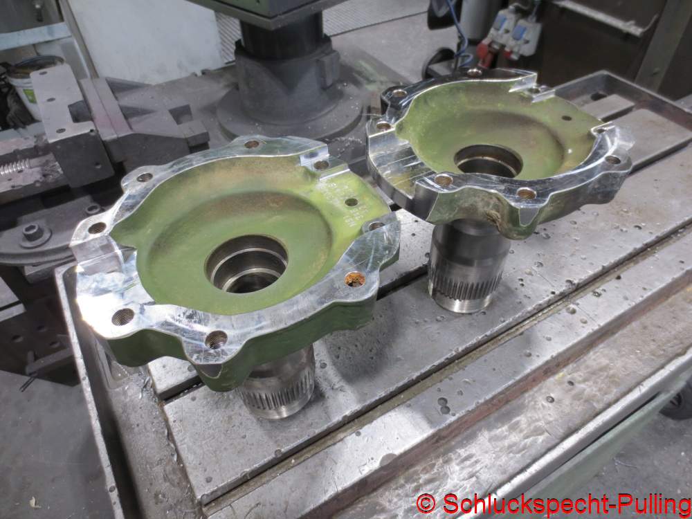 Damit wir die Achsstummel, die eigentlich in einer Mercedes Vorderachse sitzen, für uns nutzen können, müssen diese Füllstücke rein.
