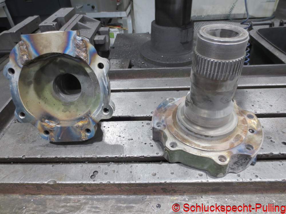 In order for us to use the axle stubs, which are actually located in a Mercedes front axle, these filler pieces have to be inserted.