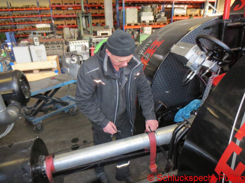 Winterarbeit! Ist doch logisch. Die Kupplungen aller drei Traktoren muss raus. Technische Abnahme wie jedes Jahr ist angesagt.