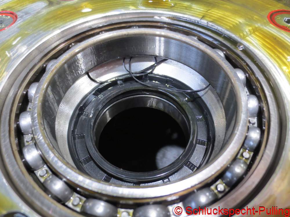 Und auch dieser Gummi-Bandwurm stellte sich als harmlos heraus. Es hatte sich nur die Dichtlippe des Kugellagers gelöst. Die wäre zur Not auch durch die Zahnräder gegangen und dann im Öl emulgiert….gewissermaßen als Viskositätsindexverbesserer. 😉