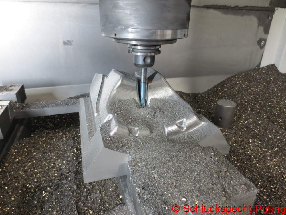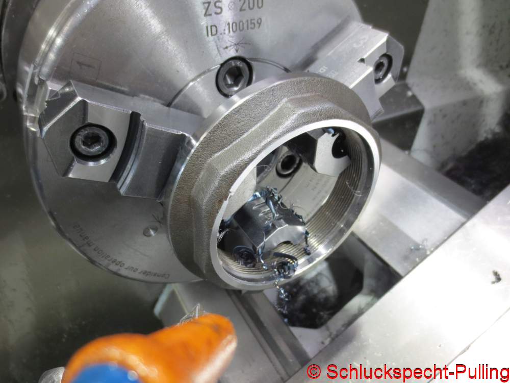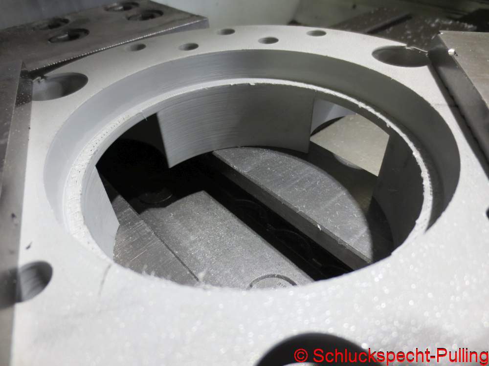 Since two functions aren’t enough, they’re now getting a third. A bearing seat is milled onto the circumference. I’ll leave you to guess what that’s going to be for a little while longer. 😉