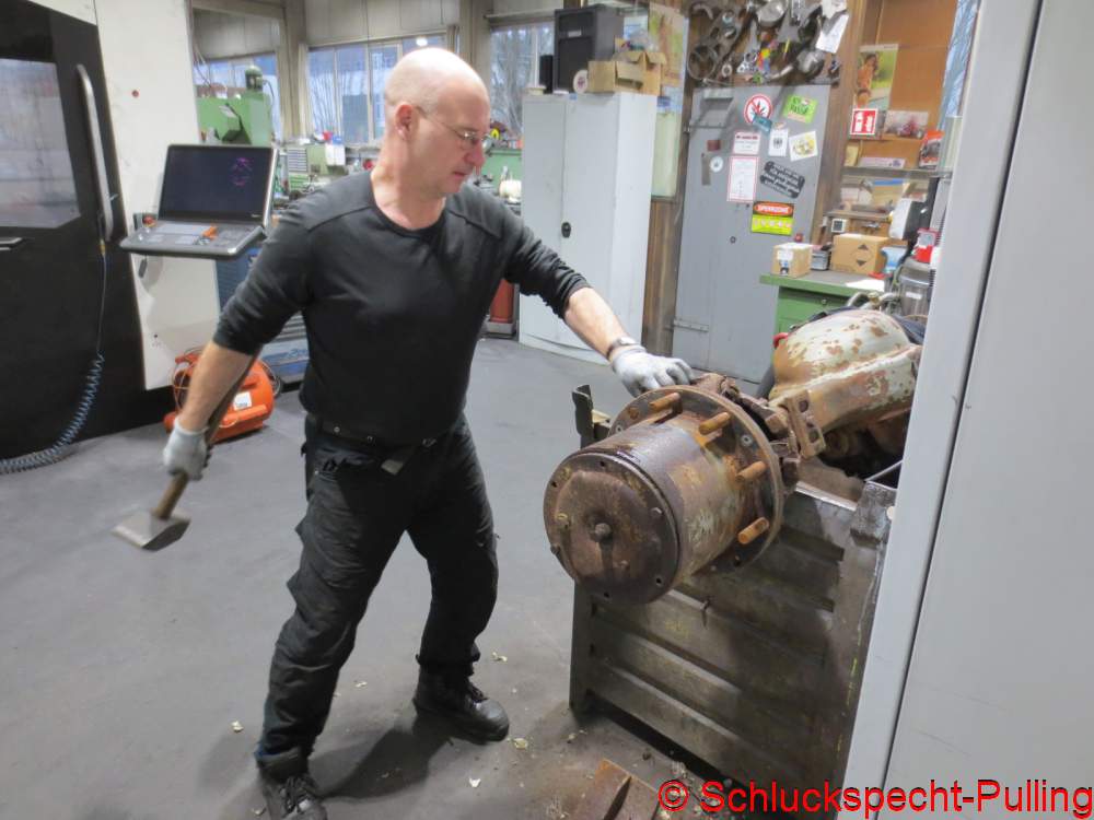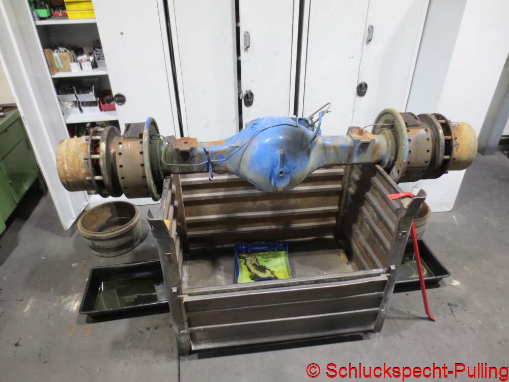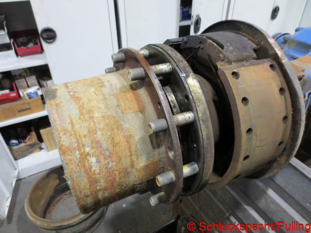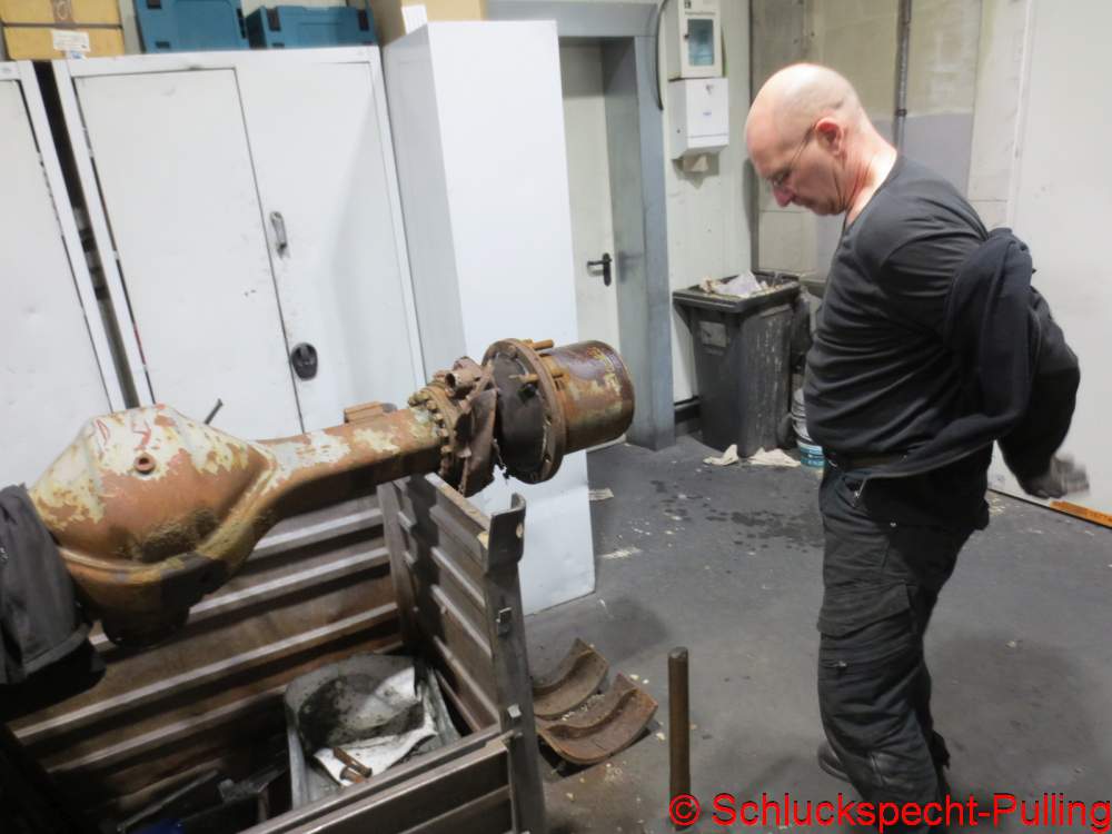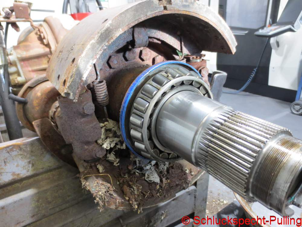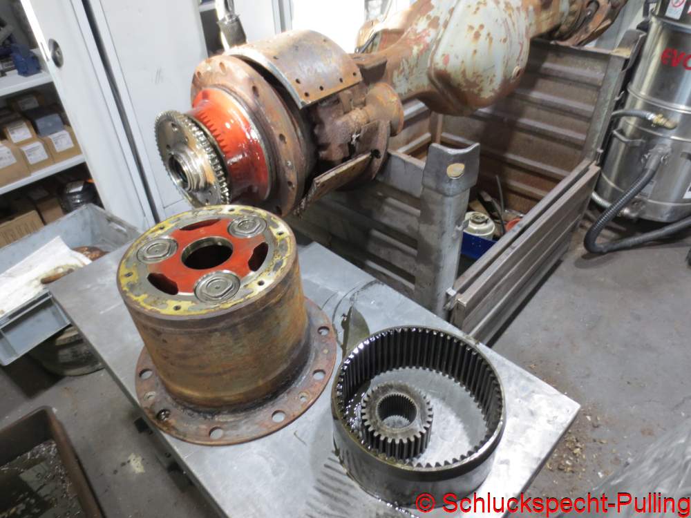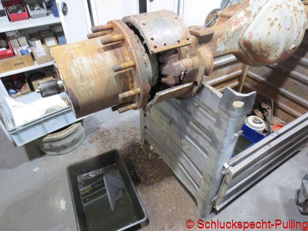 Die Achse mussten wir dann auch wie gewohnt mit Hammer, großer Flex und dem Acetylenbrenner auseinanderkloppen. Dafür hat sie das richtige Planetengetriebe.