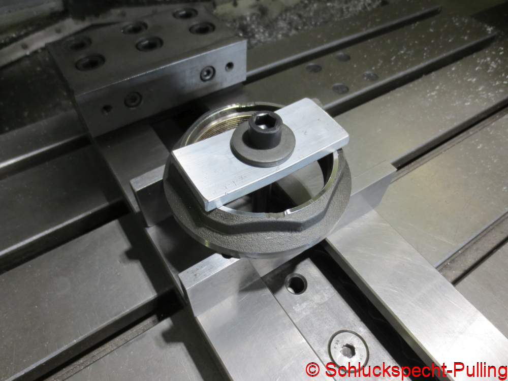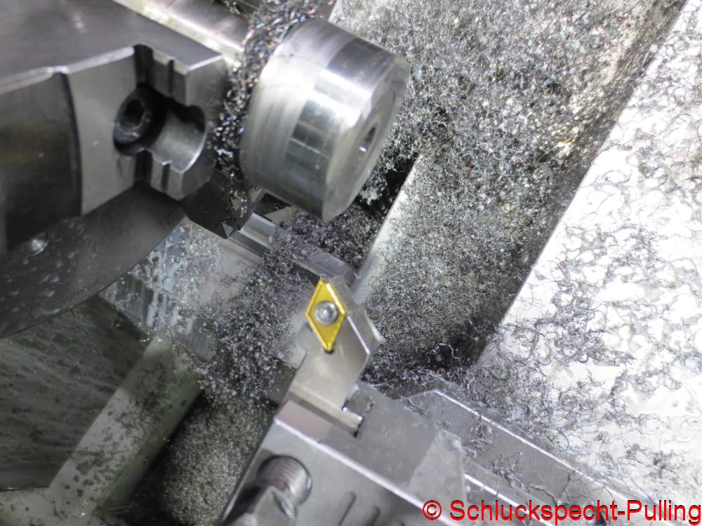 Da zwei Funktionen noch nicht genug sind, bekommen sie jetzt noch eine dritte. Ein Lagersitz wird auf den Umfang gefräst. Mit dem Rätsel was das werden soll, lasse ich euch noch ein wenig alleine. 😉