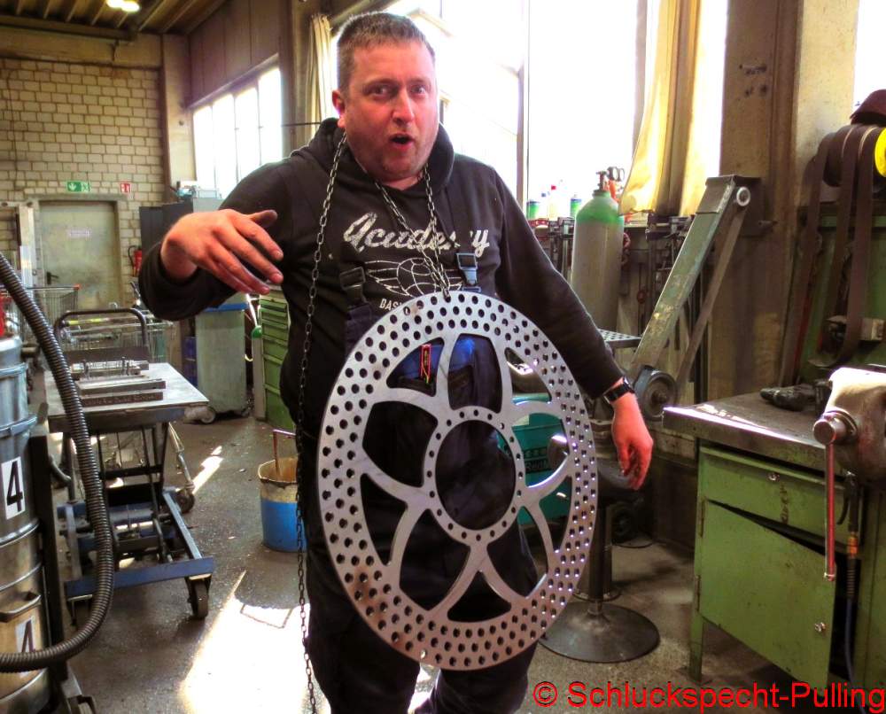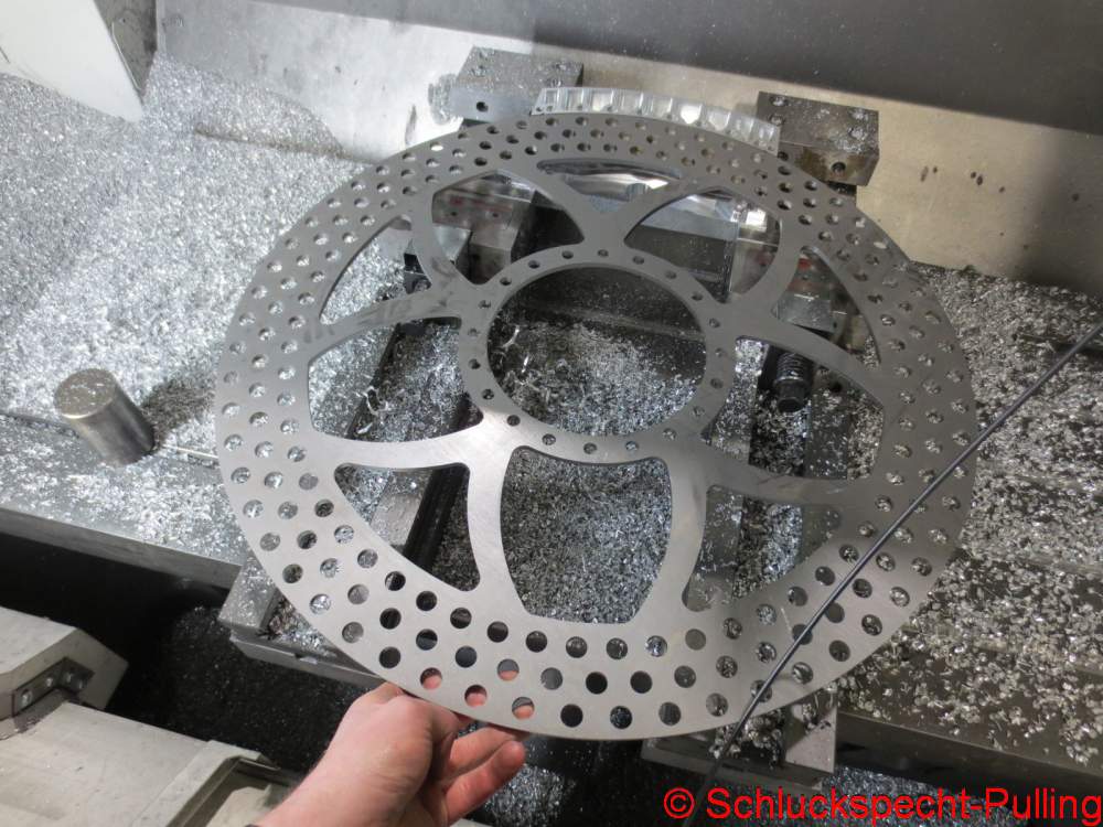 It’s a real shame that so much of that high-quality material is being machined away, but it’s supposed to be lightweight. The pistons will later have a diameter of 48mm and the brake disc measures 660mm. I think that’ll provide plenty of stopping power. 😉 😉